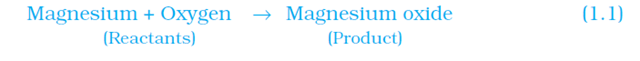 Activity 1.1 can be described as – when a magnesium ribbon is burnt in oxygen, it gets converted to magnesium oxide. This description of a chemical reaction in a sentence form is quite long. It can be written in a shorter form. The simplest way to do this is to write it in the form of a word-equation.
